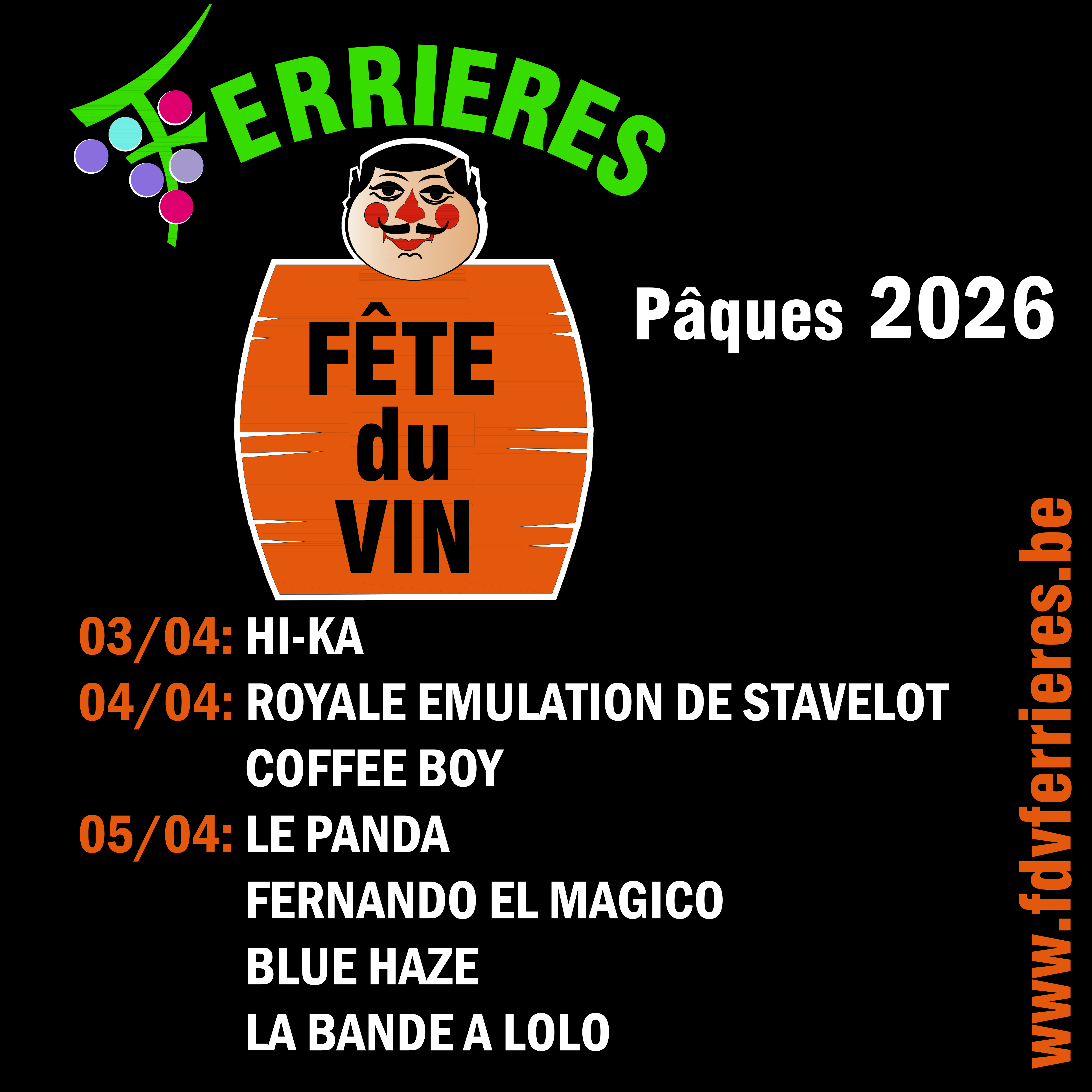 16H INAUGURATION & FONTAINE DE CHABLIS Avec la Confrérie du Caveau St Martin, les Autorités Communales et les Confréries amies 16H-20H ROYALE EMULATION DE STAVELOT 21H-1H30 COFFE BOY ENTREE GRATUITE de 16H à 18H P.A.F 14€ à partir de 18H Soirée bar à vins